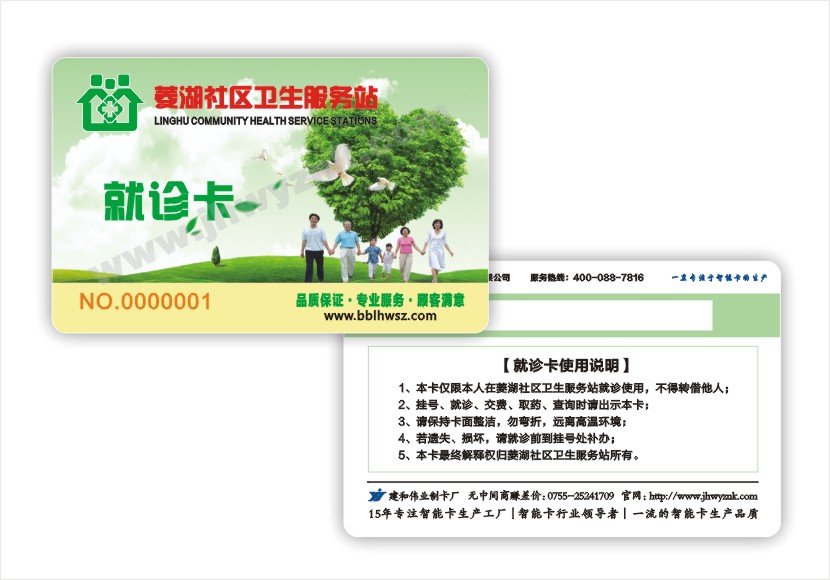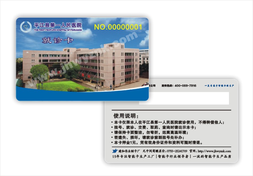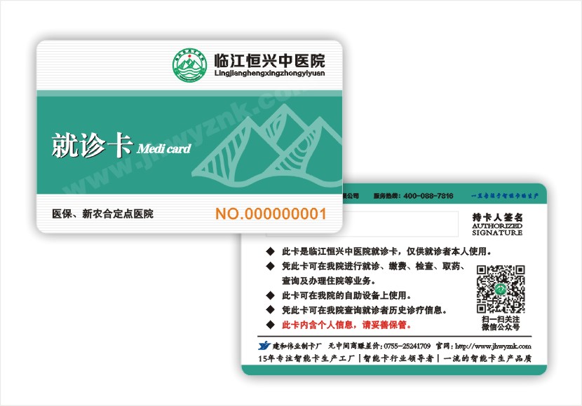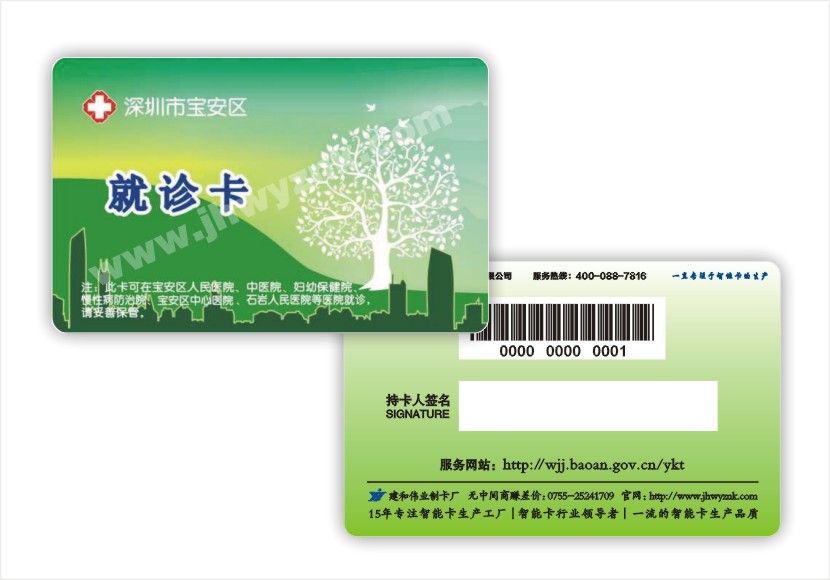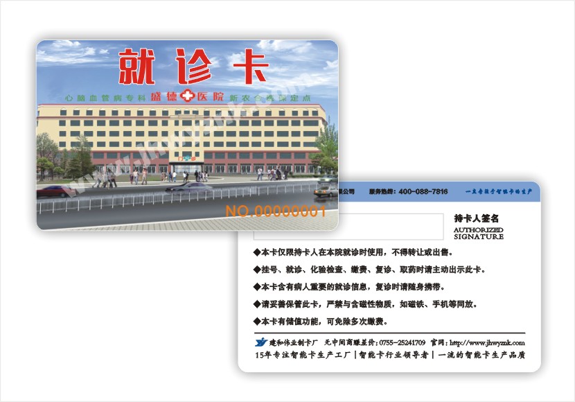 醫(yī)院就診卡、門診卡、診療卡現(xiàn)在被很多醫(yī)院采用,作為醫(yī)院信息化管理系統(tǒng)和患者之間的橋梁,有效的提高了醫(yī)院的掛號、就診、結(jié)算效率,是現(xiàn)代醫(yī)院管理信息化的具體體現(xiàn)。